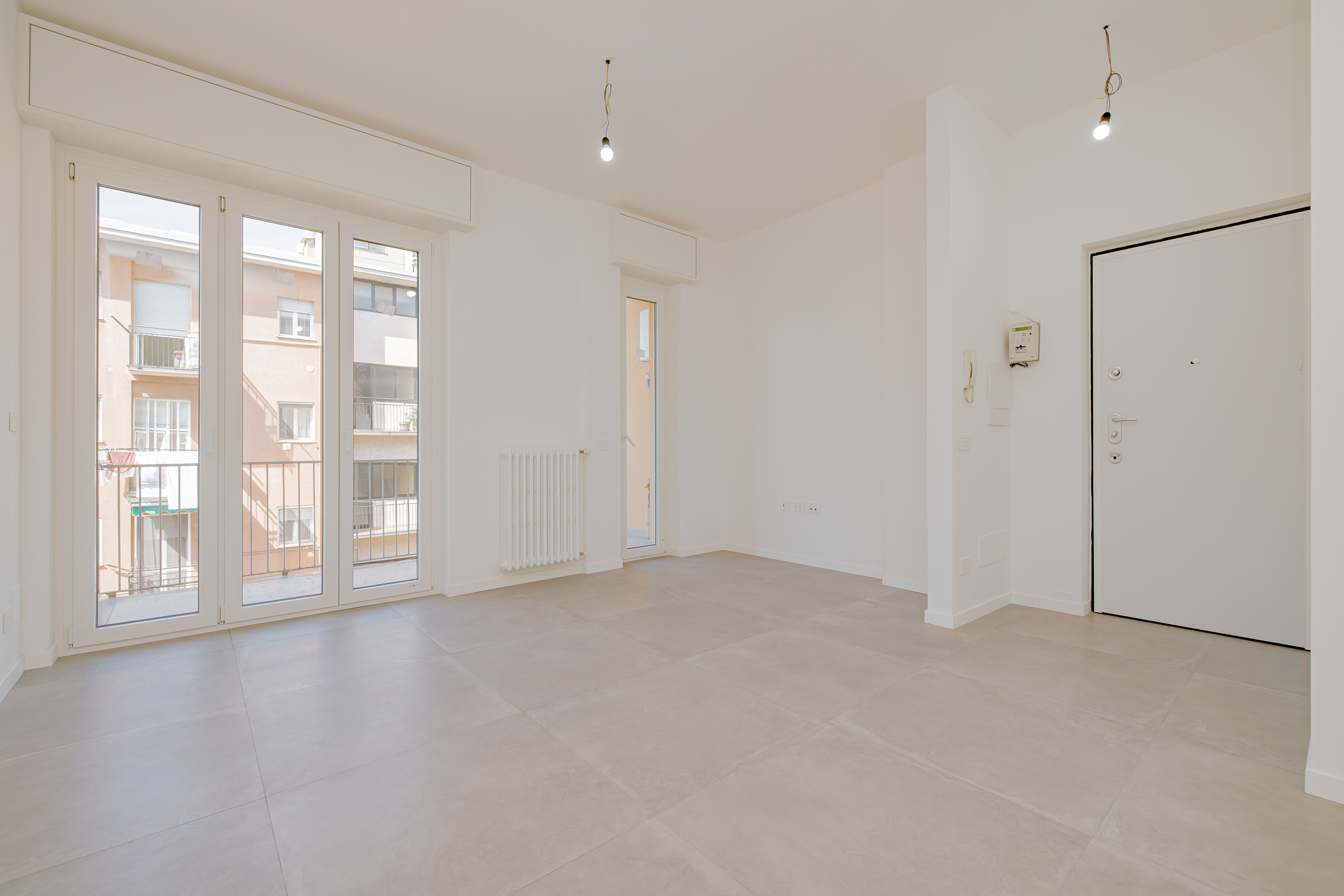 L'appartamento vanta una doppia esposizione ed è composto da soggiorno con cucina a vista, perfetto per chi ama gli spazi aperti e conviviali, mentre le due ampie porte finestre conducono a un balcone ideale per rilassarsi all'aperto. La zona notte è composta da un bagno moderno con doccia walk-in, una camera matrimoniale ed una cameretta, entrambe con accesso a un secondo balcone. L'immobile è libero subito e pronto per essere abitato.